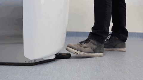 Single use (disposable) pulp bedpans are immediately put in a macerator after use. The lid closes using the foot pedal and the cycle starts automatically. Pans are pulverised into tiny particles and flushed down into waste water (sewerage), much like toilet paper.